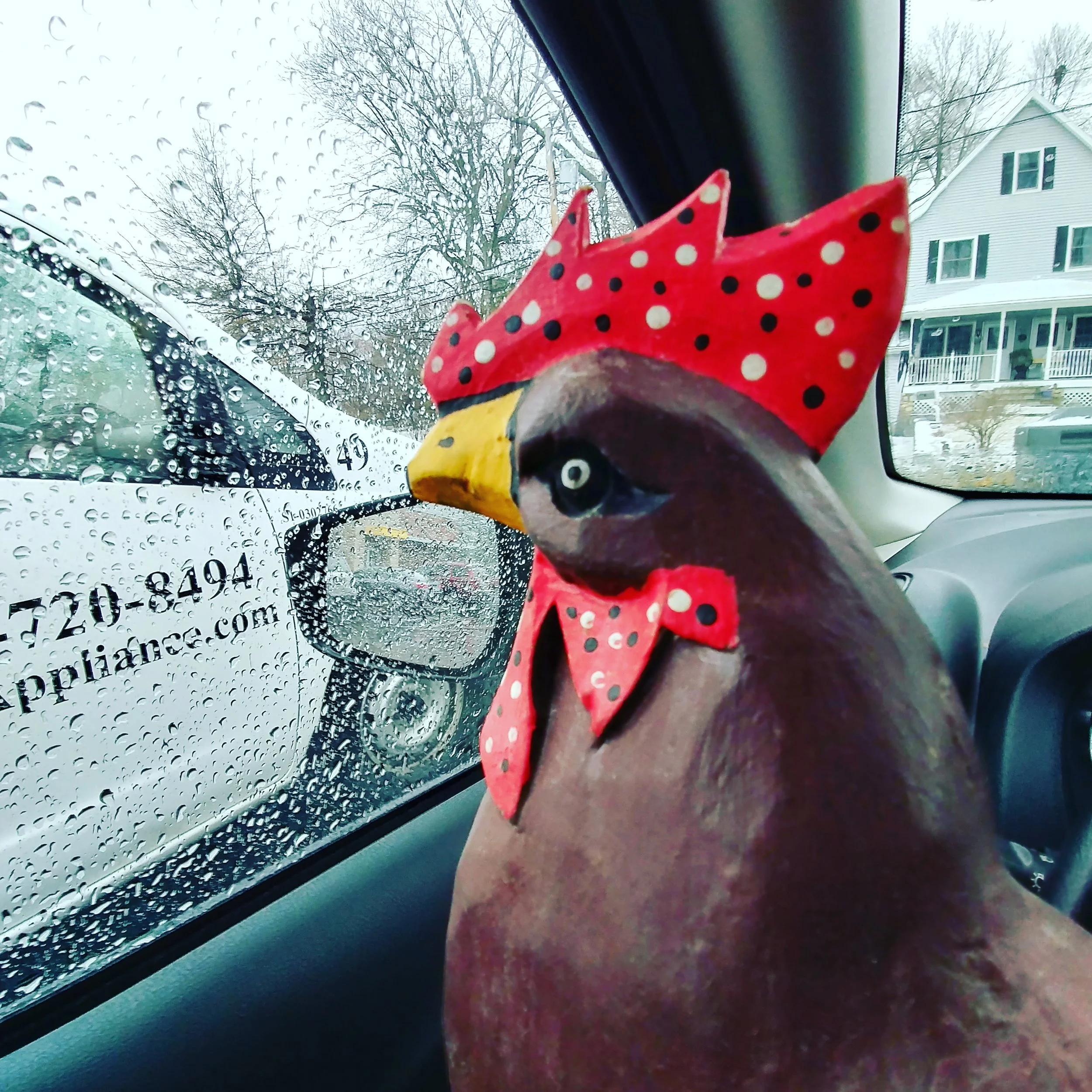 This is "Pinky," the wooden chicken I inherited from my step-grandfather, which accompanied me on the trip.